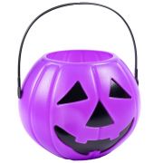 Фиолетовая пластиковая конфетница в виде тыквы – обязательный аксессуар на Хэллоуин!
