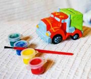 В комплекте: копилка из пластика, краски 4 цветов, кисточка