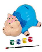 В комплекте: копилка, краски 4 цвета, кисточка.