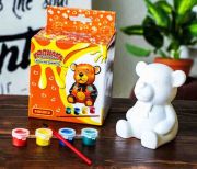 В комплекте: копилка из пластика, краски 4 цветов, кисточка