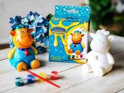 В комплекте: копилка из пластика, краски 4 цветов, кисточка