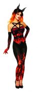 Корсет Дьявола огненный - отличный выбор для девушки, которая хочет предстать на Хэллоуин в образе роковой и сексуальной дьяволицы! Яркий корсет с языками пламени можно дополнить лосинами и перчатками в таком же стиле, а также ободком с рожками.