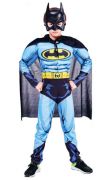 Костюм Бэтмен голубой - отличный вариант для тех мальчишек, которые хотят появиться на школьном карнавале в образе загадочного и легендарного супергероя! Светло-голубой костюм с черным плащом поможет за секунду перевоплотиться в человека-летучую мышь.