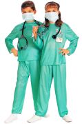 Для школьного представления или тематического праздника может пригодиться костюм Доктора со стетоскопом. Наряд состоит из повязки, брюк и рубашки бледно-зеленого цвета.