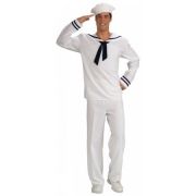 Белый костюм Моряка — это привлекательный карнавальный образ для мужчин. Полный набор из широких брюк, рубашки и пилотки максимально удобен в носке и неприхотлив в уходе.