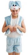 В комплект входят симпатичный головной убор в виде заячьей мордочки с ушками, жилет и шортики с забавным хвостиком-помпончиком сзади.