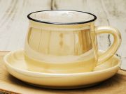 Кружка кофейная с блюдцем Желтая