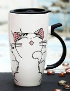 Специальная форма кружки, препятствующая остыванию, крышка с силиконовым уплотнителем и клапаном для питья и ручка в виде кошачьего хвоста порадуют владельца удобством и красотой.