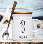 От этих кружек веет средиземноморским бризом. Сине-белая гамма, лаконичная форма, природные материалы – всё напоминает об уютном пикнике на берегу или об увлекательном морском круизе. Бамбуковая крышка сохранит тепло напитка, а удобная деревянная ручка на ложке не даст обжечь пальцы при размешивании.