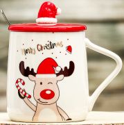 Новогодняя оригинальна кружка с ложечкой и крышкой
