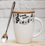 Материал:  керамика, ложка-сталь, крышка-бамбук.