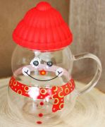 Кружка стеклянная Снеговик красный