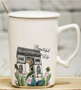Материал: кружка и крышка из фарфора, ложка из металла.