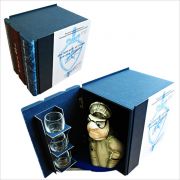 Подарочная книга с наполнением: ФАРФОРОВЫЙ ШТОФ, 3 стеклянные стопки. Метод персонализации: индивидуальная полиграфия (книга), деколь (каска, рюмки)