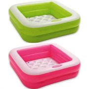 Детский надувной бассейн Intex квадратной формы, с непрозрачными внешними стенками. Поверхность надувного дна имеет противоскользящее покрытие и сливной клапан. Дно надувное!