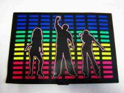 Эквалайзер будет работать как цветомузыка на вашей футболке во время дискотеки. На каждом эквалайзере имеется двойной скотч для крепления на одежде. Электронный блок с батарейками закрепляется на на поясе.
