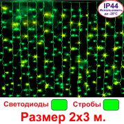 Гирлянда-занавес (мерцают зеленые светодиоды, 2х3м)