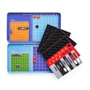 Состав игры: металлическая коробочка - игральная доска,10 магнитных элементов - боевых кораблей, 130 черных магнитных элементов, 34 красных магнитных элемента