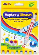 Маркеры со штампами, двухсторонние,8 штук,8 цветов