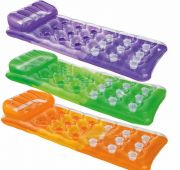 Надувной пляжный матрас с прозрачным верхом, разноцветными пазами (18 шт.) и перламутровым днищем. Специальная система поддержки, внутренние перегородки конструкции Coil-beam, которая не позволяет матрасу сминаться, 18 лунок. Удобная форма подушки подголовника, обеспечит полную релаксацию. Две воздушные камеры, которые не дадут плавучему средству утонуть даже в том случае, если одна из них спуститься. Отличный вариант для плавания или отдыха на пляже.