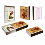 Подарочный футляр, стилизованный под спичечный коробок. Наполнение: фарфоровая фляга с тематическим изображением, 3 стопки.