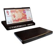 Деревянная плакетка-подставка с металлической накладкой в виде купюры