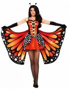 Шикарный костюм Мисс Бабочка Монарх сделает вас самой заметной на вечеринке. В набор входит яркое платье с анималистичным принтом, ободок с усиками и большие крылья. В костюме использованы черный, оранжевый и белый цвета. Объем придает многоярусная юбка и подклад из сетки.