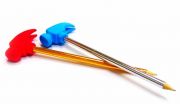 Ластик выполнен в виде молотка и надет на простой карандаш.