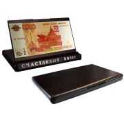 Деревянная плакетка-подставка с металлической накладкой в виде купюры