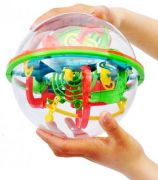 Головоломка в форме шара с лабиринтом, состоящим из различных дорожек. Внутри находится металлический шарик, который необходимо привести к цели путем вращения прозрачной сферы в руках. Игрушка, предназначенная развивать терпение, ловкость, память, моторику и пространственное мышление.