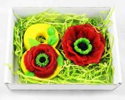 Ароматное мыло ручной работы в виде фигурного мыла "8" с декоративным маком и таким же, но большим цветком. Набор мыла уложен в коробку с прозрачной крышкой, на дне для мягкости бумажный наполнитель. Мыло обладает приятным и нежным ароматом, содержит эфирные масла. Мыло будет бережно ухаживать за кожей, питать и успокаивать её, а фруктовый аромат приятно удивит.