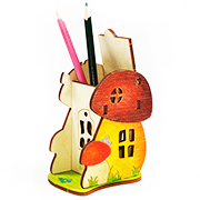 Приятная деревянная поверхность развивает тактильные ощущения, а возможность рисовать на ней красками, фломастерами и цветными карандашами прививает творческий вкус. Набор полностью безопасен, так как дерево не содержит пропиток и отдушек. Домик можно использовать как подставку для канцелярских принадлежностей.