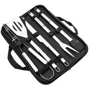 Набор для барбекю в сумке. Сумка из полимерного волокна с пластиковыми вставками для жесткости. Столовые приборы для барбекю из коррозионностойкой стали.