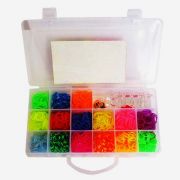 В набор входит: Станок Крючок 1200 разноцветных ярких резинок (15 цветов); Прозрачные клипсы: 9шт; Инструкция на русском языке.