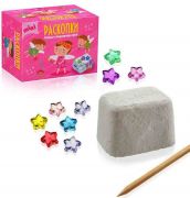 В наборе: брусок с артефактами внутри (россыпь находок в форме звездочек из пластика), деревянный стек для дробления.