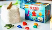В наборе: брусок с артефактами внутри (игрушка из пластика в форме морского животного и россыпь цветных камней), деревянный стек для дробления. Находки в ассортименте