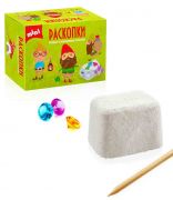 В наборе: брусок с артефактами внутри (россыпь находок из пластика в форме бриллиантов), деревянный стек для дробления.