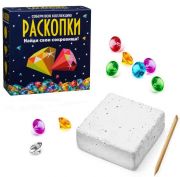 В наборе: деревянный стек для дробления, окаменелый грунт с сокровищами (россыпь разноцветных камней из пластика в форме бриллиантов). Цвета находок в ассортименте.