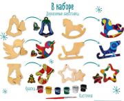 В комплекте: 10 заготовок из дерева, краски, кисть