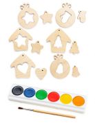 С этим набором вы сможете украсить свою елку самыми необычными игрушками! Фигурные заготовки из качественной древесины идеально подойдут для праздничного творчества. Раскрашивайте фигурки красками, карандашами или фломастерами, добавляйте декор и аксессуары. Каждая поделка разбирается на части, превращаясь в две игрушки. Все деревянные детали обработаны лазером, что исключает занозы и порезы. Набор прекрасно подойдет в качестве праздничного подарка как взрослым, так и детям. В наборе: 12 игрушек из дерева, краски. Упаковка: картонная коробка Размер упаковки: 24х17х5 см