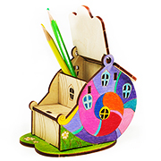 Материалом игрушки является дерево, которое не содержит отдушек и пропиток, что делает ее полностью безопасной и позволяет использовать любые краски, карандаши, фломастеры и даже гелиевые ручки. Такой домик является подставкой для канцелярских принадлежностей и будет прекрасным украшением детской.