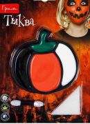 Грим предназначен для нанесения на одежду и кожу чтобы создать образ к вечеинке "Хэлоуин". Легко наносится и смывается. Безопасен для детской кожи. Ёмкость для грима выполнена в виде тыквы, разделённой на сектора. В каждом секторе размещён грим определённого цвета: зелёный, черный, оранжевый, белый. В комплекте также есть аппликатор и спонж для нанесения.