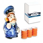 В состав подарочного набора входит фарфоровый штоф "Проводник" и три стопки.