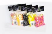 В набор входит: 600 резинок для плетения loom bands, маленький крючок для плетения, S-клипсы, рогатка для плетения