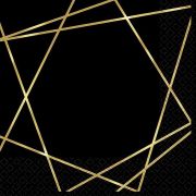 Стильные салфетки с геометрическими золотыми линиями на черном. В упаковке 16 бумажных салфеток размером 25х25см.