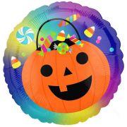 Яркий фольгированный шар на Хэллоуин с забавной тыквой конфетницей. Размер шара: 45 см.