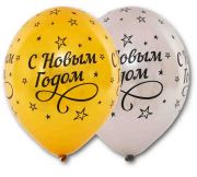 Высококачественный шар из натурального латекса. Ассорти из двух цветов - золотые и серебряные шары. Рисунок напечатан черной краской.