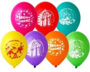 Высококачественный шар из натурального латекса. Ассорти из 10-12 цветов (в случайном соотношении), одного типа - пастель - матовый оттенок цвета. Шары с двусторонним шелкографическим рисунком (6 дизайнов на тему "Новый год" в пакете) с большим полем печати.