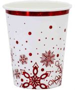Стильные бумажные стаканчики для Нового Года с красными голографическими снежинками. Объем 250мл, 6шт в упаковке.