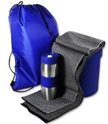 – Термокружка . Материал: нержавеющая сталь с силиконовой вставкой. Объем 400 мл. Размеры: 20,5х8,5 см. Прекрасно сохраняет тепло, имеет удобную крышку с дозатором. Одним нажатием на кнопку активируется отверстие для питья, при отпускании кнопки оно плотно закрывается. Двойные стенки кружки и отличная вакуумная изоляция позволяют сохранить напитки горячими до четырех часов.